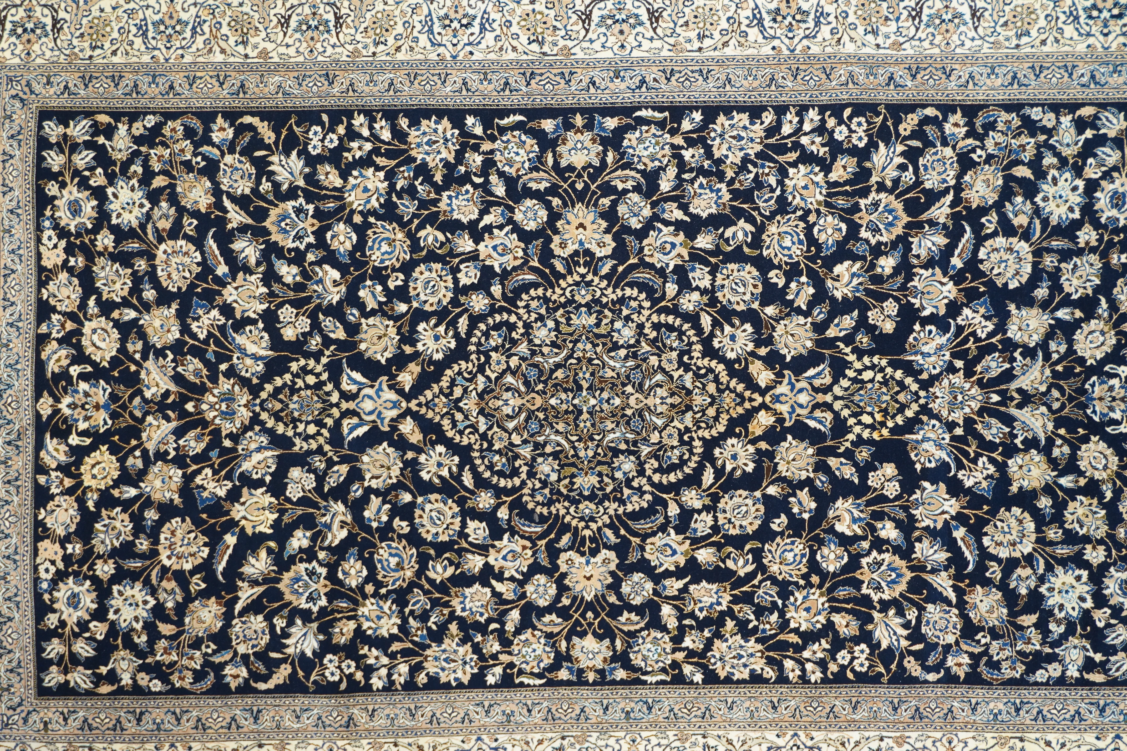 The rugs of this central town, from the 1930’s onward; very fine to extremely fine. Generally in light colors on medallion designs. Scatters to large carpets, no runners or prayer rugs. Short, velvety pile, precise execution, cotton foundations. Expensive to very expensive.